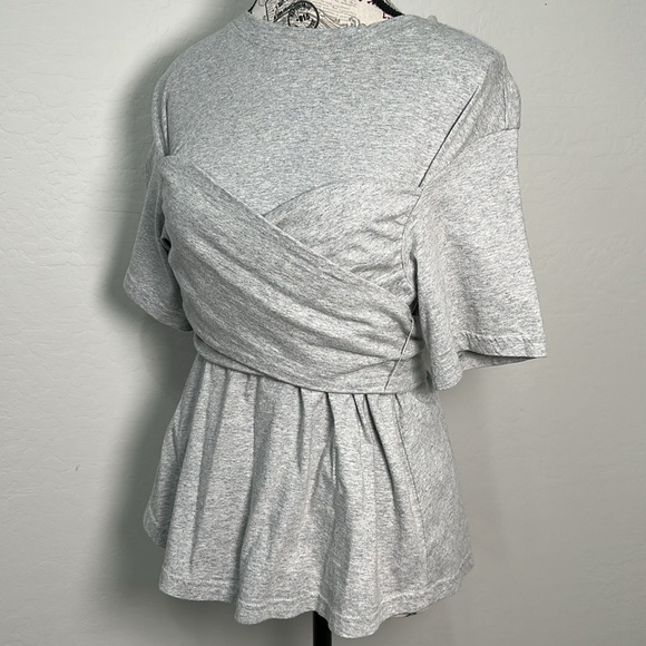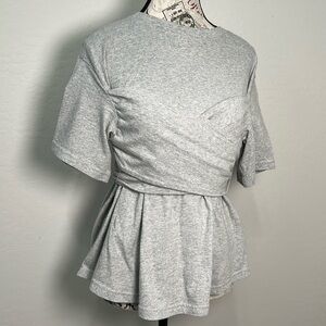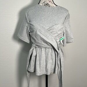 Beautiful gray women's top with a unique wrap design. Perfect for casual outings.