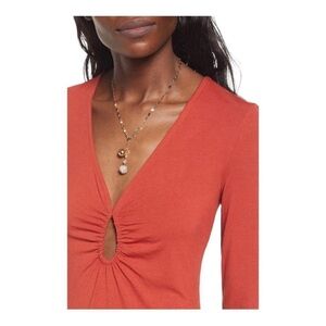 Open Edit rust Ruched V-Neck Long Sleeve Maxi