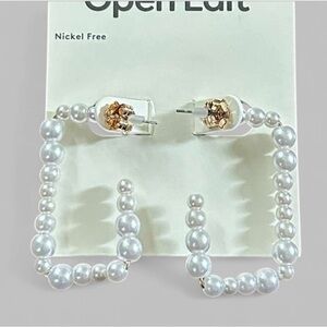 Open Edit-Faux Pearl Rectangle Earrings-white/Gold-NWT