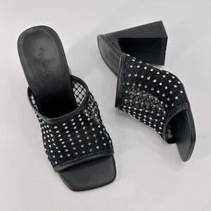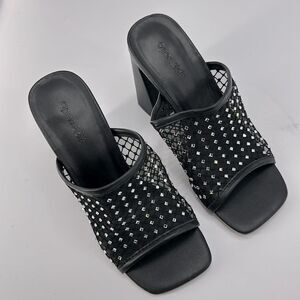 Open Edit Sienna Black Mesh Jewel Embellished Block Heel Sandal. Size 5.5. In good pre-owned condition. No visible flaws.