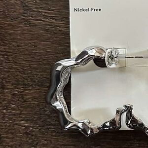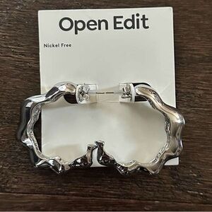 Open Edit-Wavy Molten Hoop Earrings-silver rhodium-NWT