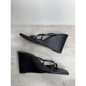 Open Edit Wedge Sandals Size 9 Black Open Square Toe