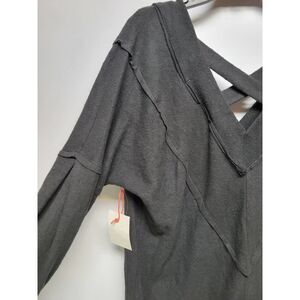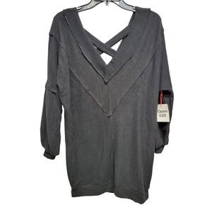 Open Edit Womens Sweater Dress Black Stretch V Neck Long Sleeve Knit