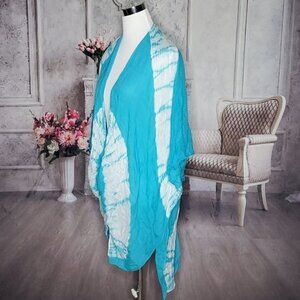 Open Front Blue White Tie Dye Summer Beach Vacation Swim Cover Up One Size