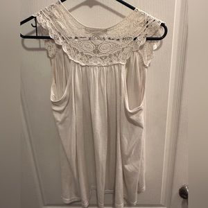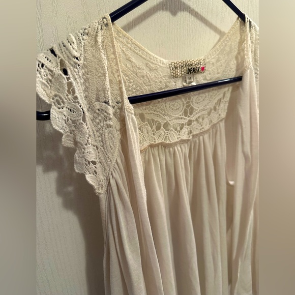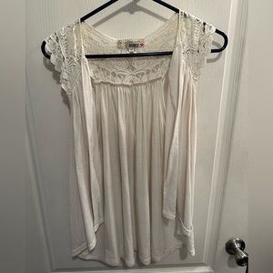 Women’s light weight sleeveless open front cardigan - good condition but it has a small spray tan stain along some of the trim of the arm area. It would probably come out with stain remover. Super cute with several different outfits!