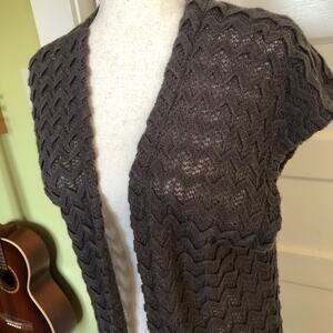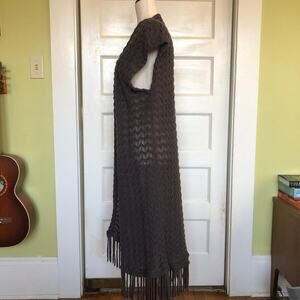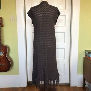 Open Front Chevron Knit Long Cardigan Duster Brown Fringe OS Y2K Boho Festival