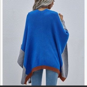 Open Front Color Block Batwing Ruana