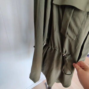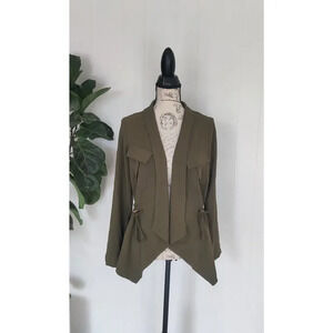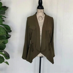 Open Drape Front Jacket Olive Green Size XS/S Drawstring adjustable Waist Lightweight Layering Jacket