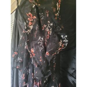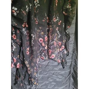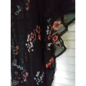 Open Front Floral Kimono Lightweight Flowy Oversized Trendy Black Top Blouse L