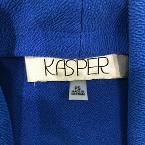 Bright blue crepe flyaway-front jacket in size PS. Lightweight for excellent year-round layering possibilities over a dress/blouse and pants/ jeans and tee. 3/4 Length Sleeve with pit-to-cuff measurement of 12in.