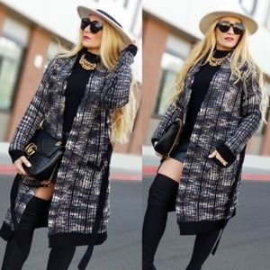 Super versatile extra long, plaid print cardigan with tie belt! Perfect for keeping cozy while lounging around the house or running errands on chilly winter days. This long knit cardigan is perfect as the cooler weather arrives! Just add one of our bodysuits and jeans for a fab look!