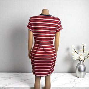 This eye-catching NOBO used short dress features a daring open stomach design and vibrant multicolor stripes that demand attention. The comfortable crew neck and stretchy polyester-spandex blend (94%/6%) ensure a flattering fit for size XL. Perfect for making a bold statement while enjoying exceptional comfort and movement all day long.