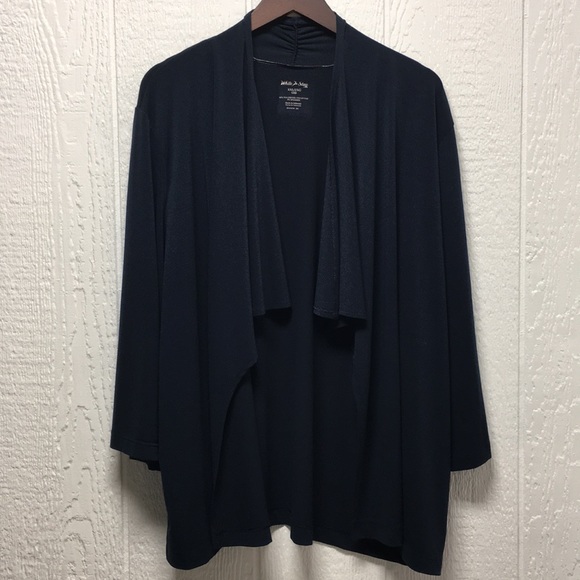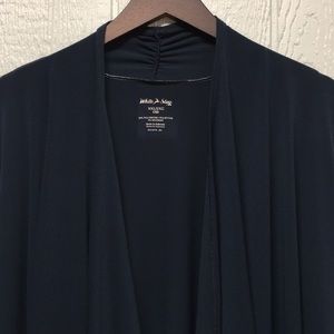 White Stage brand, super lightweight and flowy. Navy, open front, 95% poly and 5% spandex. Length measures 27 1/2”. Gently used from a smoke-free home. Bundles and offers encouraged.