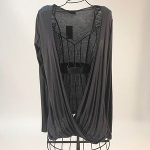 Long sleeved open front grey yoga top. Soft and lightweight.