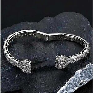 Silver open heart triple AAA zircon baguette cuff bangle iced out bracelet.