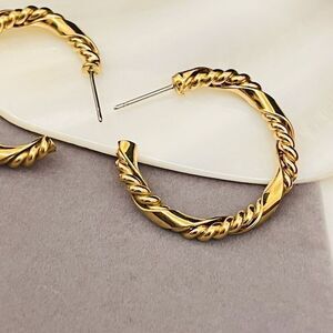 Open Hoops Twisted Rope Gold Tone Mod Pierced Earrings MCM Vintage CUTE 1119