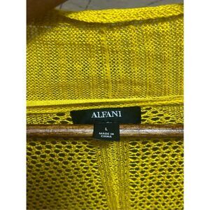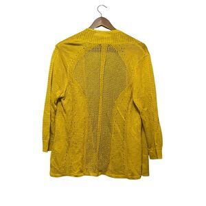 Open Knit Cardigan Yellow Linen Blend Lightweight Slit Hem Layering L/G