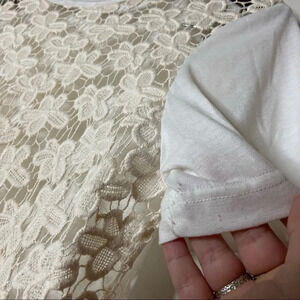 Open Knit Lace Floral Top Layered Top Short Sleeve Size XL Womens
