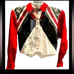Open Range red Western Cowgirl crop top RODEO SHOE SHIRT black White WOMEN’S MED