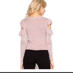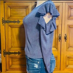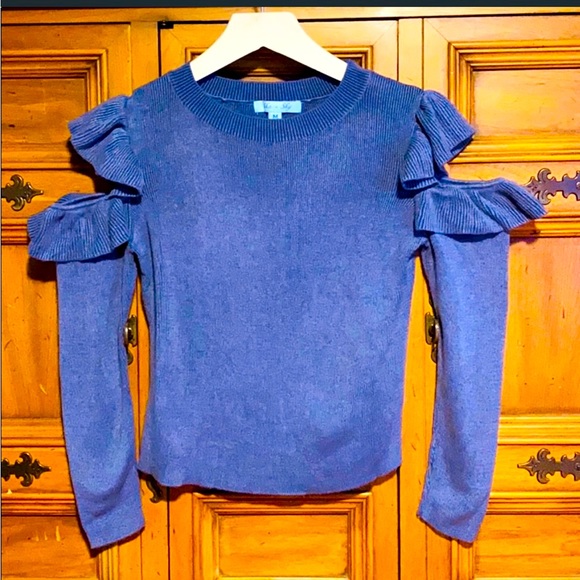 Open Shoulder Ruffled Blue Sweater
