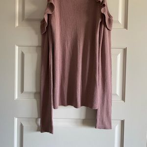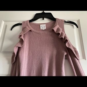 Open Shoulder Ruffled & Ribbed Sweater