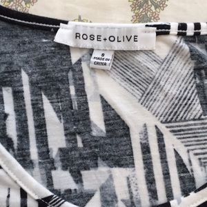Rose + Olive Short Sleeve shirt in Small. Shoulders peek out on both sides. Also has a high-low design. Material feels so comfortable; 95% Rayon, 5% Spandex. Worn once.