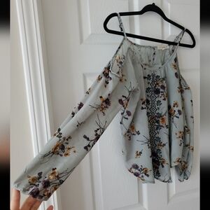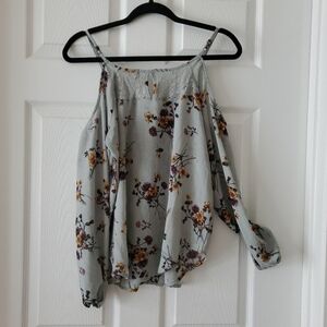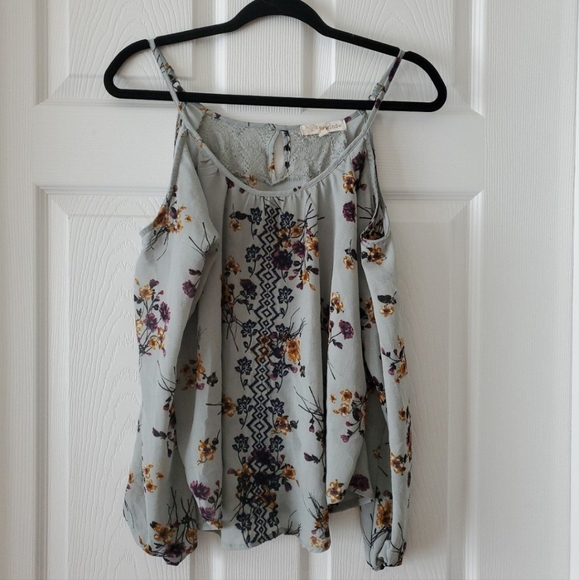 pretty sagy green color open shoulder top lace detail on back embroidery detail on front