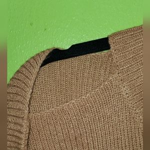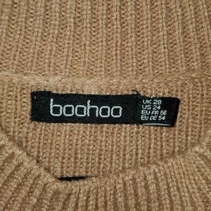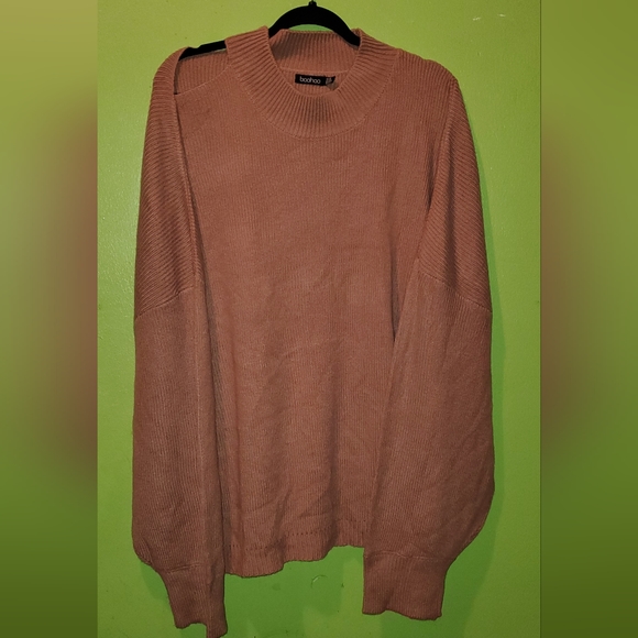 long sleeve, camel color, stretch, round neck, textured, one open shoulder, size 24