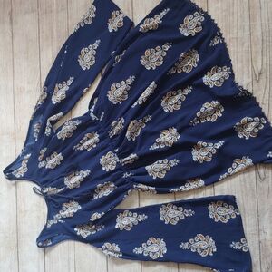 Beautiful floral mini-dress! Elastic waist, open sleeves with a full length, tie at the neck. Wide sleeves, lace trim. Excellent condition and prefect for spring and summer! (U1)