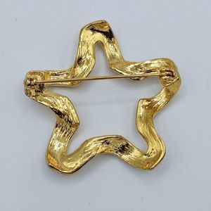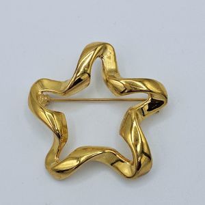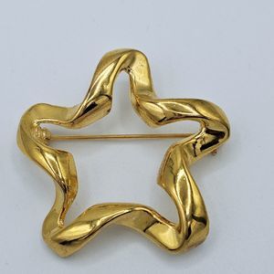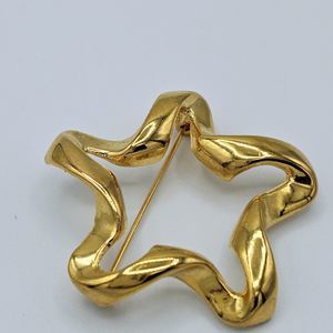 Open Star Brooch Vintage Twist Ribbon Gold Tone Modernist Chunky Minimalist Pin. Brooch is 1 3/4" unsigned. In great vintage condition.