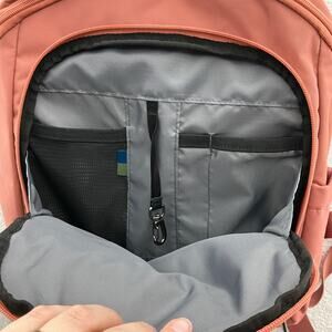 Open Story Target Rose Pink Gray Adjustable Straps Bottle Tech Pockets Zip Nylon Mini Backpack Bag