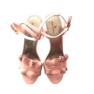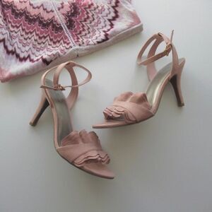 Show stopping Worthington Chandler Blush Ruffle Open Toe Sandals - These stunning open toe ruffle heels are perfect for your next night out. The gorgeous blush hue creates a seamless neutral in footwear style! 4” heel with adjustable ankle strap.