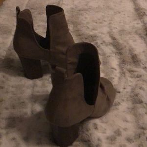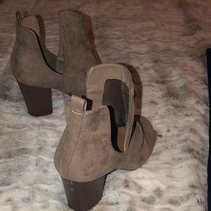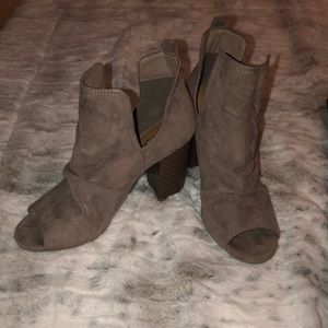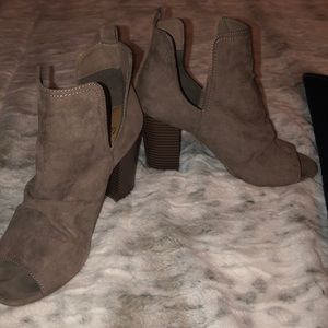 Beige open toe booties