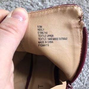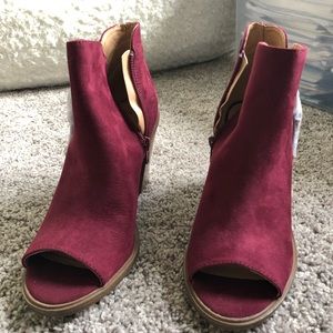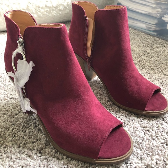 Never been worn! Super cute maroon, zip booties; fits 8-8.5