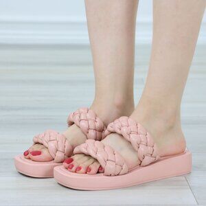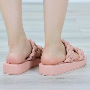 Open Toe Flip Flops Slide Sandal Faux Leather Braided Straps Slipper Slip On