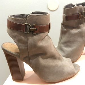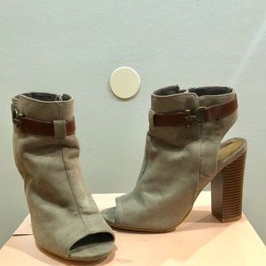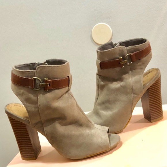 Open heel & toe bootie. Comfortable as it has a thick heel. Perfect for fall & spring!