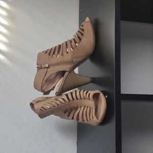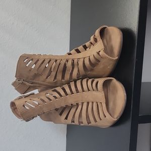 strappy open toe sandals with a small heel. super comfortable and easy to walk in.