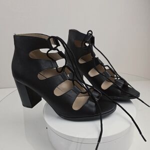 Open Toe Lace Up Stacked Heel Size 9 Black