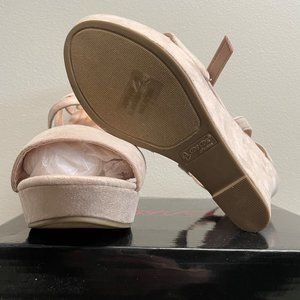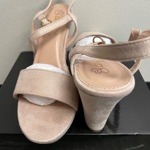 Cute and comfortable strappy wedge. Heel measures approximately 4.5 inches.