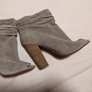 Light grey suede open Toe Boots by