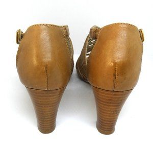 Ellen Tracy Open Toe Sandals Size 7 1/2 Tan Buckle 4" Heel