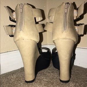Preloved open toe wedge heel with two ankle straps in great condition. Each has a few minor stain on the inside of shoes.