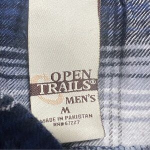 Open Trails Mens Hooded Blue and Grey Button Up Flannel Size Medium, Great Preowned Condition