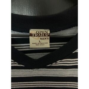 Open Trails Striped T-Shirt V-Neck Short Sleeve Casual Top Mens L