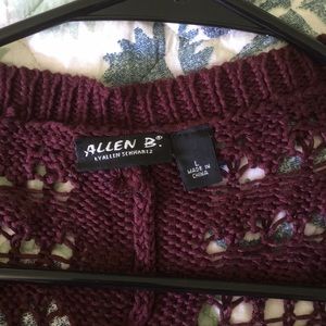 This burgundy sweater hangs fairly loose and has an open weave. It’s great for summer nights! Condition like new.