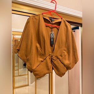Elevate your style with this chic brown button-front top. Perfect for any occasion, this top offers a flattering fit and elegant design.