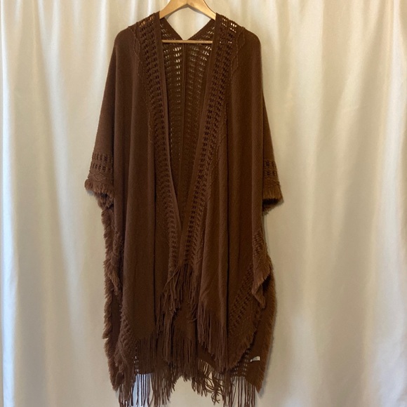 Open Work Frayed Border Bohemian Ruana