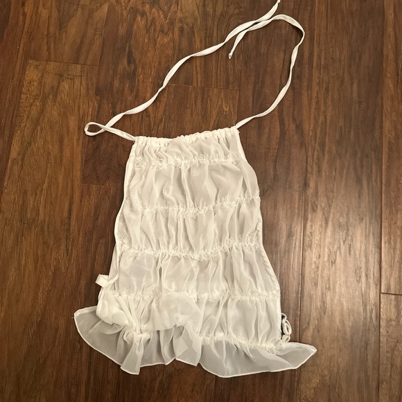 Chic white halter top with ruffled design. Perfect for a stylish look.