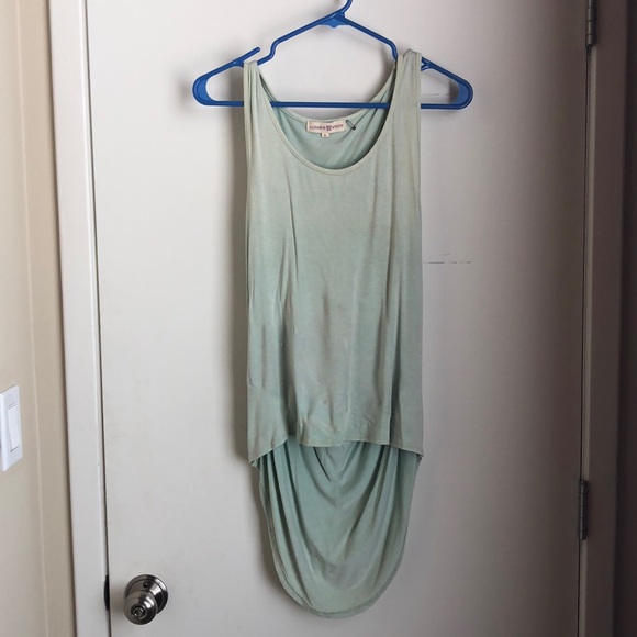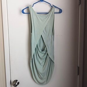 This sea foam green tank with the back cut out is so easy to wear. The back detail makes this basic piece a little less basic and I really like that it’s longer in the back than it is in the front. Never been worn.