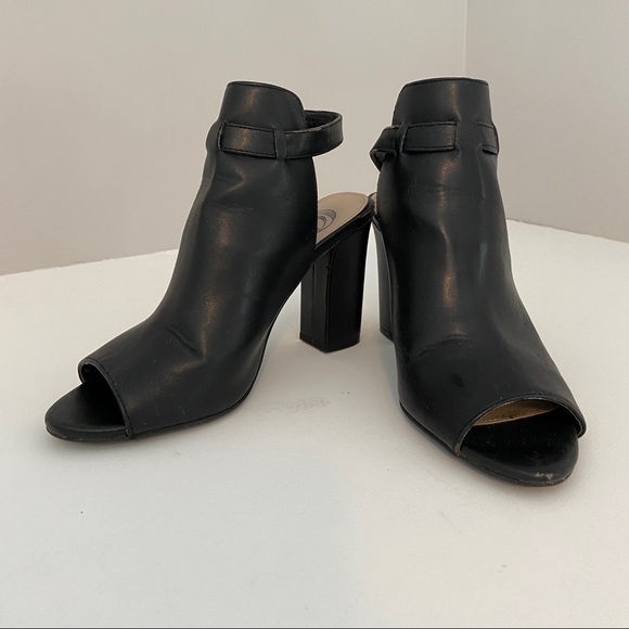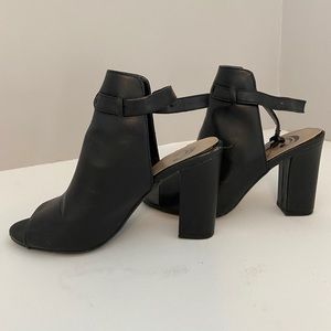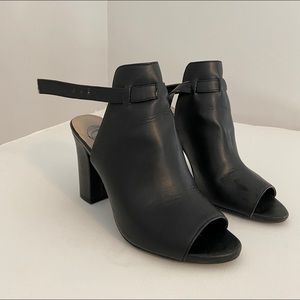 Cute heeled booties with open toe and open back cut out. Really comfortable and stylish. Great w jeans. Good condition, minor wear and tear.